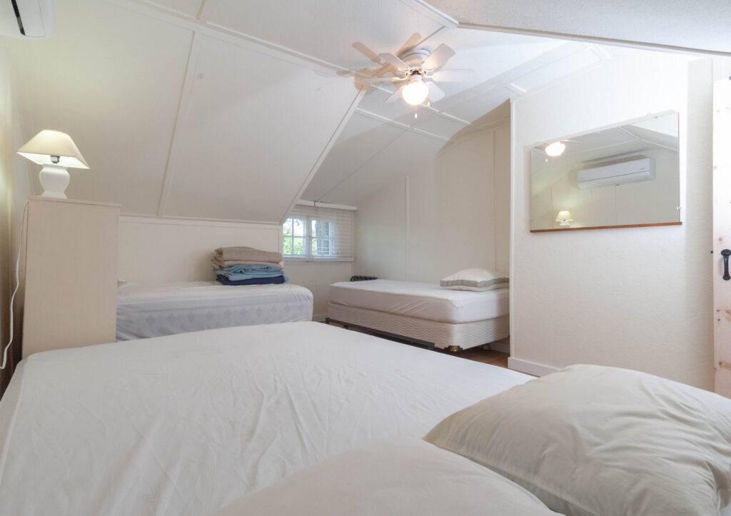 Three bedrooms with three queen-size and three single beds. Sleeps eight.